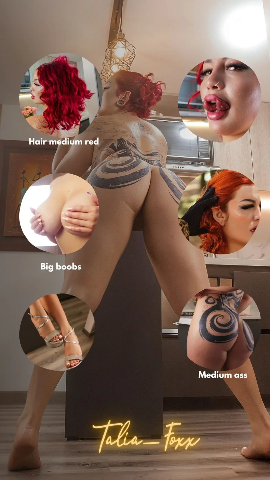 I am a girl with red hair, big bust, big butt, cut tongue, cut ears like an elf, a tattoo all over my back and buttocks, come and see my fantasy world.